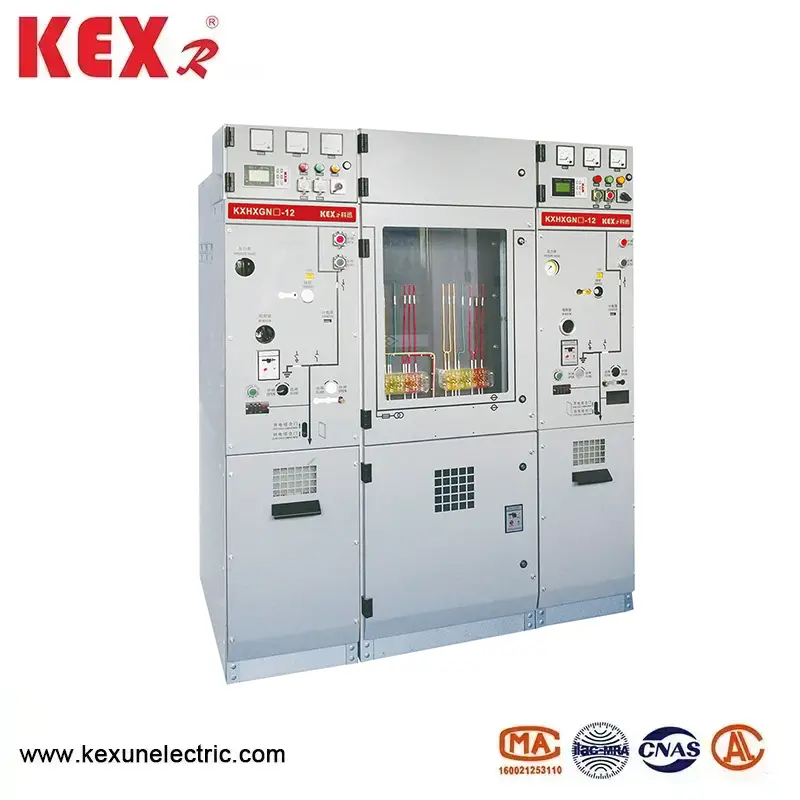 KXHXGN-12 TYPE AIS Switchgear تولید شده توسط KEXR ، یک تأمین کننده تجهیزات انتقال و توزیع نیرو در چین ، یک کابینت شبکه حلقه ای با عایق گاز 12 کیلو ولت (C-GIS) با گاز حفاظت از محیط زیست (مانند هوای خشک یا گاز مخلوط) به عنوان محیط عایق مناسب است ، که مناسب برای منبع تغذیه حلقه ، منبع تغذیه ترمینال و توزیع های کوچک است. مدل: KXHXGN-12 برند : kexr