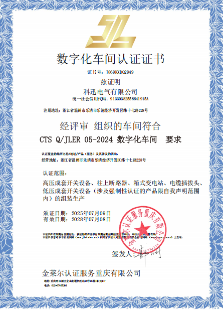 شرکت صدور گواهینامه Gunler Chongqing Co. ، Ltd. یک موسسه صدور گواهینامه شخص ثالث مستقل است که متخصص در تجارت صدور گواهینامه است. این اداره توسط اداره ملی صدور گواهینامه و اعتباربخشی (CNCA) تأیید شده است ، و برای بسیاری از شرکت های برق مجوز کارخانه ای داشته است. این یک موسسه گواهینامه مشهور و معتبر شخص ثالث در چین است. Kexun در نیمه اول سال 2025 با شرکت گانلر تماس گرفت. به دلیل مشاغل شلوغ ، شرکت گونلر قرار است برای بررسی در روز ویژه 1 ژوئیه به Kexun بیاید. پس از یک هفته حسابرسی کارخانه ، حسابرسان گونلر ، به کارگاه دیجیتال ، کارگاه دیجیتال ، کارگاه دیجیتالی ، کارگاه دیجیتال ، کارخانه هوشمند و کارخانه تولید هوشمند اعطا کردند. دامنه صدور گواهینامه شامل سوئیچ ولتاژ بالا ، شکن های مدار پستی ، پست های نوع جعبه ، شاخه های کابل و سوئیچ ولتاژ کم است.